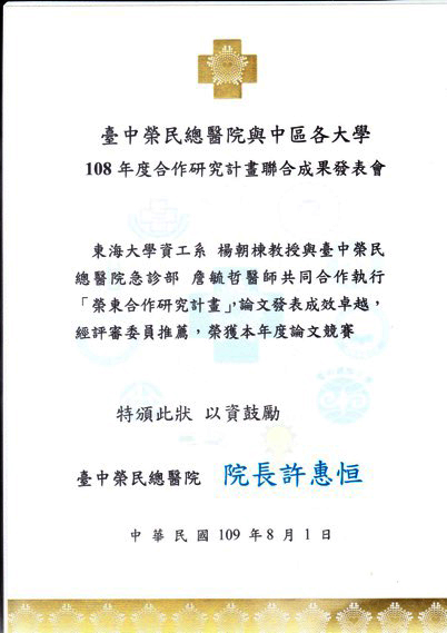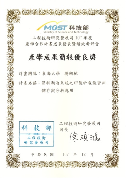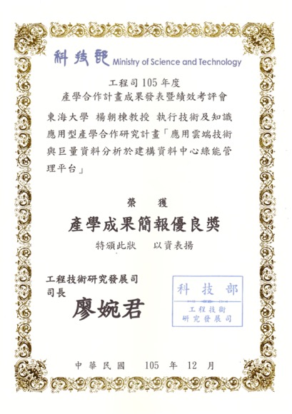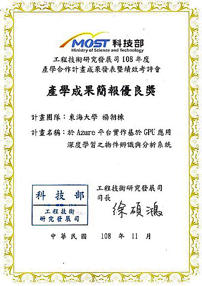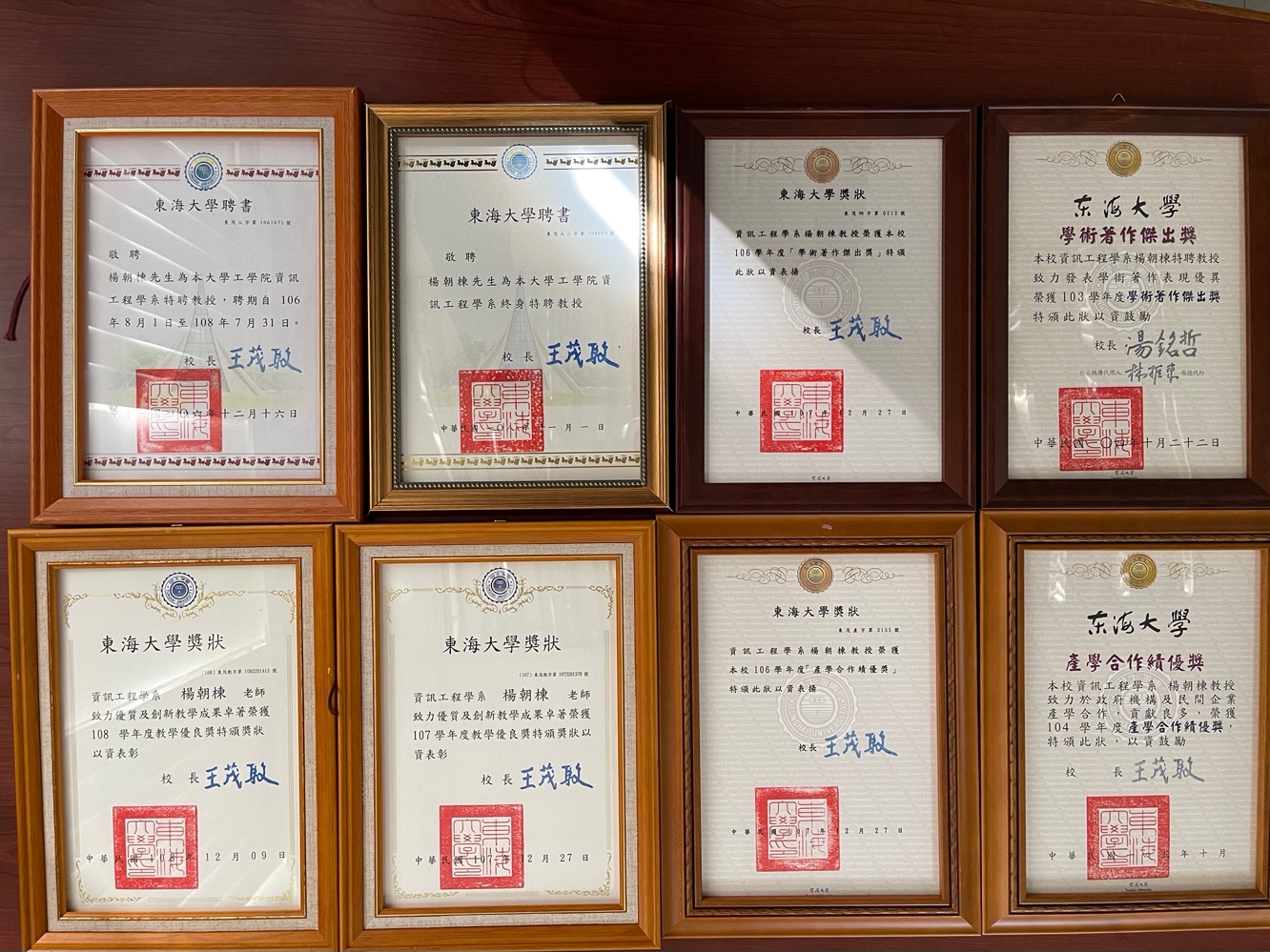 年多次榮獲國科會工程處技術及知識應用型產學合作計畫成果發表(電子資通領域)簡報「產學傑出獎」與「產學優良獎」,連續十三年獲得校方推薦為國科會補助大專校院研究獎勵。楊教授的傑出表現,榮獲中國工程師學會 110