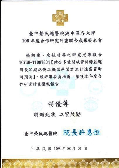 年「資訊榮譽獎章」,以及台灣雲端計算學會(TACC)2022年「傑出產學貢獻獎」與中華工程教育學會(IEET)2023 年「教學傑出獎」,表彰傑出教學成就。並於 110 年與 111